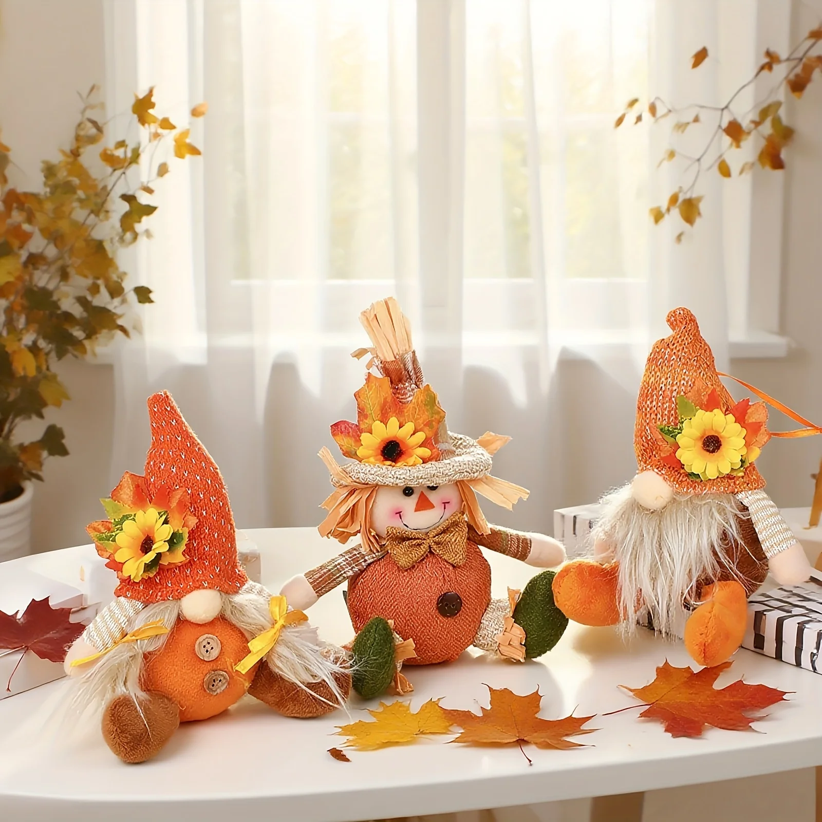 Rustic Autumn Harvest Scarecrow Deco Plaid & Sunflower Accents for Halloween Farmhouse Wall Deco Party Props